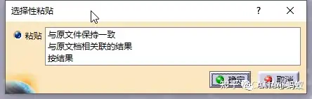 在Part1中复制几何体1,选择性粘贴到Part1(他自己),粘贴的时候选择“按结果”。 此时粘贴出来的实体带有闪电标识,并且与原有几何体1不存在关联关系(断链),更新几何体1,实体不会跟着一起更新。
